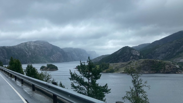 ~ Camping Preikestolen, Noorwegen naar Mauranger, Noorwegen ~ Om 10.00 uur naar voren op de camping gereden om de watertank aan te vullen. Van al dat koffie en thee drinken raakt die dan toch leeg na een week. Uitchecken en natuurlijk nog even een toepasselijke Noorweegse stickers kopen voor de auto en camper. Goed gelukt, …