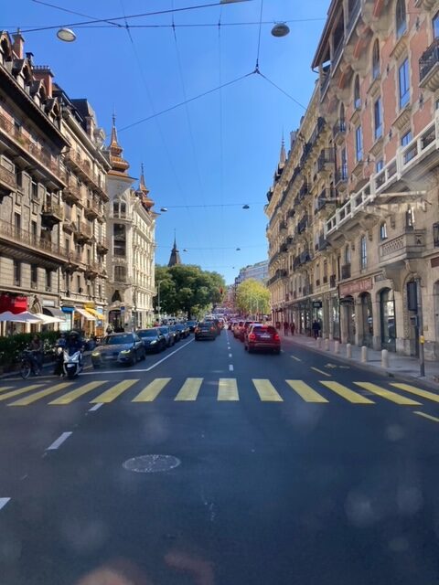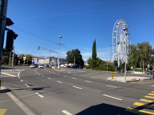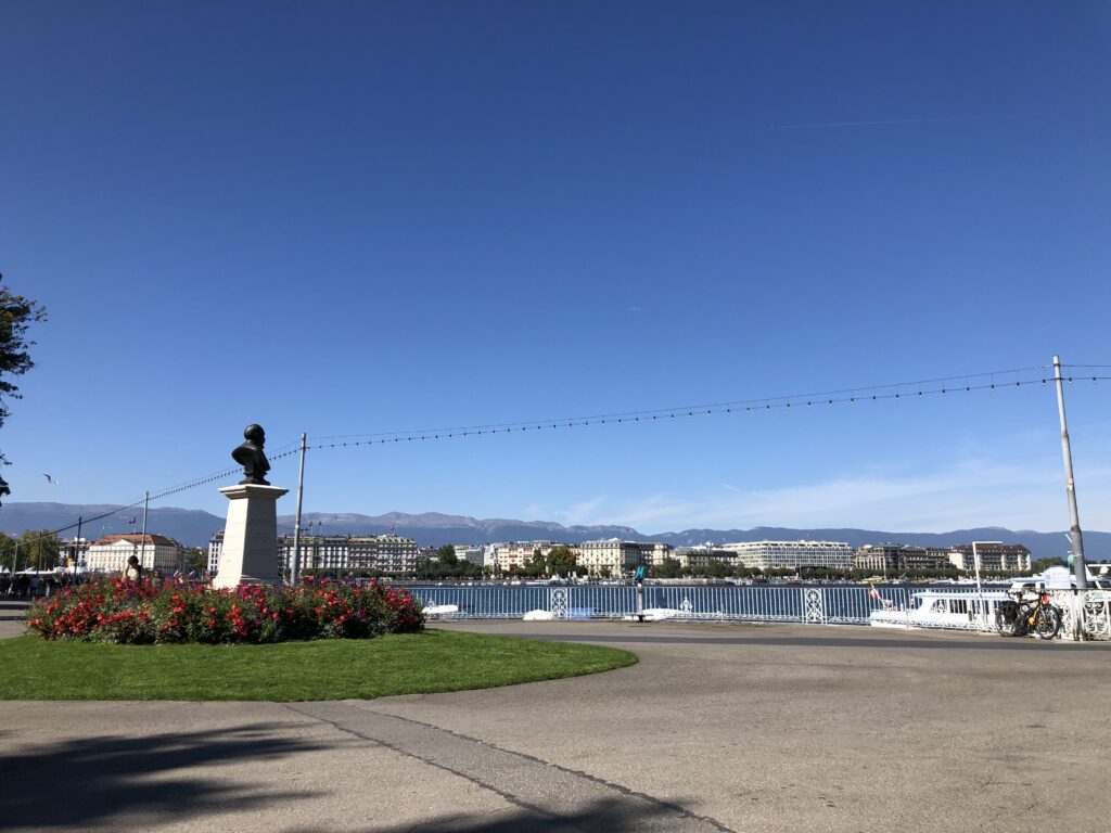 Na de afwas gedaan te hebben, op naar Genève stad. We lopen naar de bushalte bij de camping en beginnen te twijfelen of we überhaupt wel goed staan. Dan toch maar de berg op voor een andere bushalte, die we overigens niet konden vinden. Dus dan toch maar we terug naar de bushalte bij de camping. De eerste wandeling hadden we er dus al op zitten. Het eerste half uur was ook al verstreken en nog geen bus gezien. Dit gaat alweer lekker haha. We komen erachter dat de bus vandaag maar één keer in het uur komt. Terug naar ‘onze tuin ‘ bij de camper om te wachten en ondertussen maar vast de bammetjes te eten die we eigenlijk hadden bedacht voor als lunch in de stad. Maarja het is inmiddels al bijna 13.30 uur.
