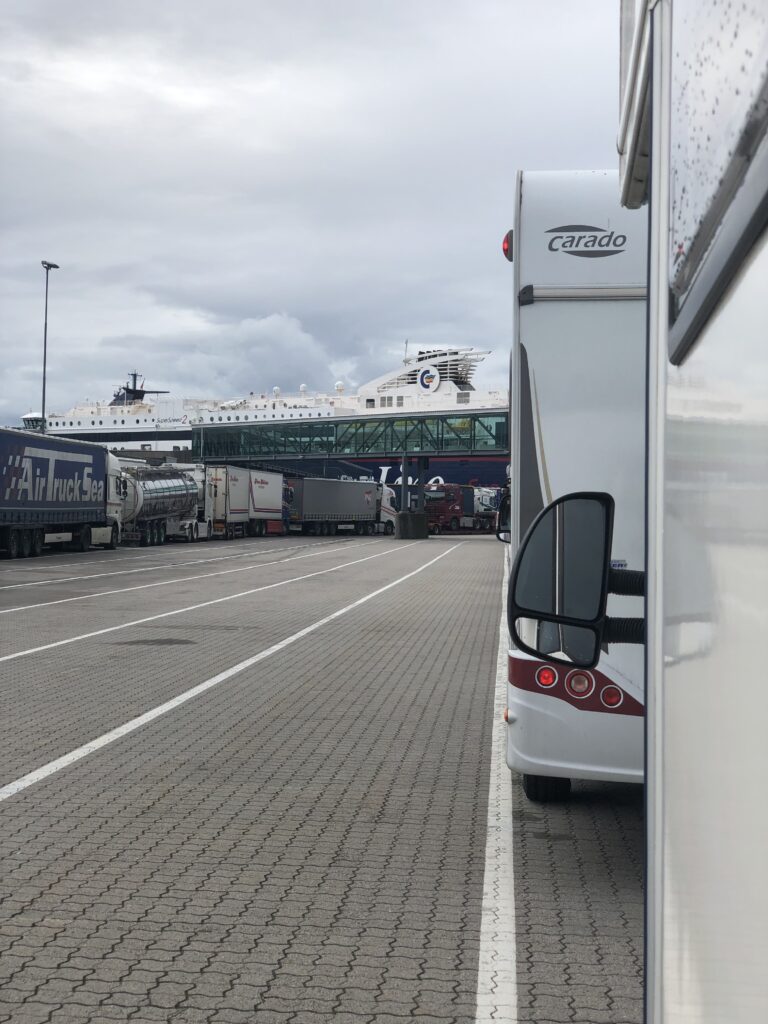 Nog geen 4 uur later is daar dan het spannende moment. De boot is afgemeerd en nu is het nog de vraag of de camper start en wij er zelfstandig vanaf kunnen rijden. Of dat we nog zo’n sleepje nodig hebben. Als allerlaatste voertuig die de boot moet verlaten, start ook de camper weer en kunnen wij zelfstandig de boot verlaten. Gelukkig was de motor goed genoeg afgekoeld! Snel naar een tankstation voor wat eten en een kopje koffie. Dit terwijl we de camper voor alle zekerheid stationair laten lopen. Nog even een camping uitgezocht, want ojaa, wildkamperen mag vanaf dit moment niet meer. De camping liet ons er nog op, we hebben nog een kleine borrel gedaan en zijn lekker ons bed ingekropen. Tja, weinig kilometers zelf gereden, maar wat heeft dit weer veel energie gekost. De spanning kan je op de been houden, maar toch na een tijdje ook breken. Morgen een nieuwe dag en snel doorrijden naar Duitsland!