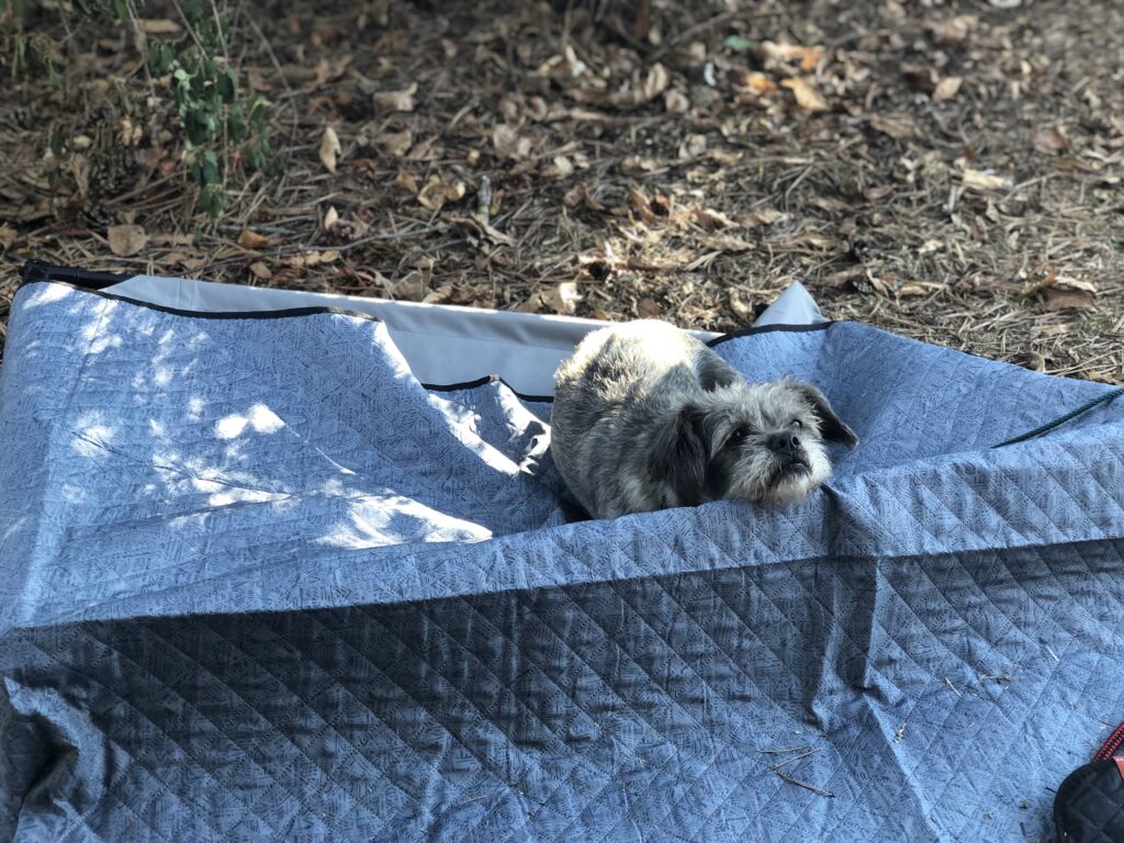 Bij aankomst is het een lekkere warme 26 graden. Fijn voor de hondjes als ze lekker op hun ‘buitenbed ‘ kunnen liggen. Laat het niet zo zijn dat Laris 3 van de 4 poten heeft meegenomen. Geen ‘buitenbed ‘ voor Suus & Laika. Helaas, volgende keer beter hihi.