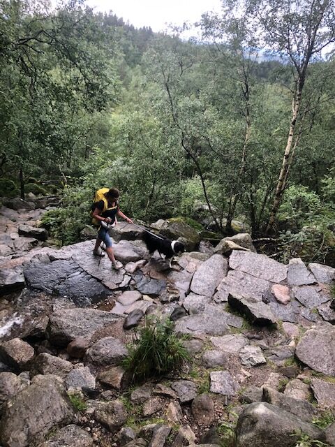 Geen enkel fatsoenlijk pad en alles was beklimmen op keien en rotsen. Wat zijn wij blij dat wij onze honden in de camper hebben gelaten en wat baalt Bailey ervan om mee te moeten.